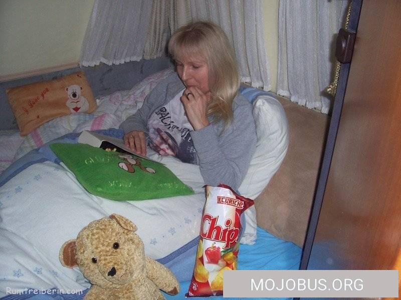 Kuschelig war´s…..auch mit Hugo (Kindheitsteddy), der mich anlächelt unten im Bild 😛 und Chips essen geht sowieso